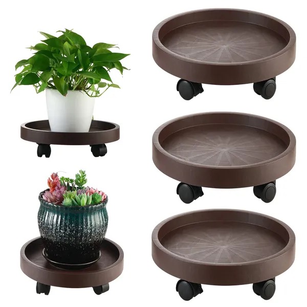 + Free Shipping8 Pack Plant Caddy with Wheels Heavy Duty 12.2 Inch Plant Dolly with Locking Casters Rolling Plant Stand for Indoor Outdoor, Brown